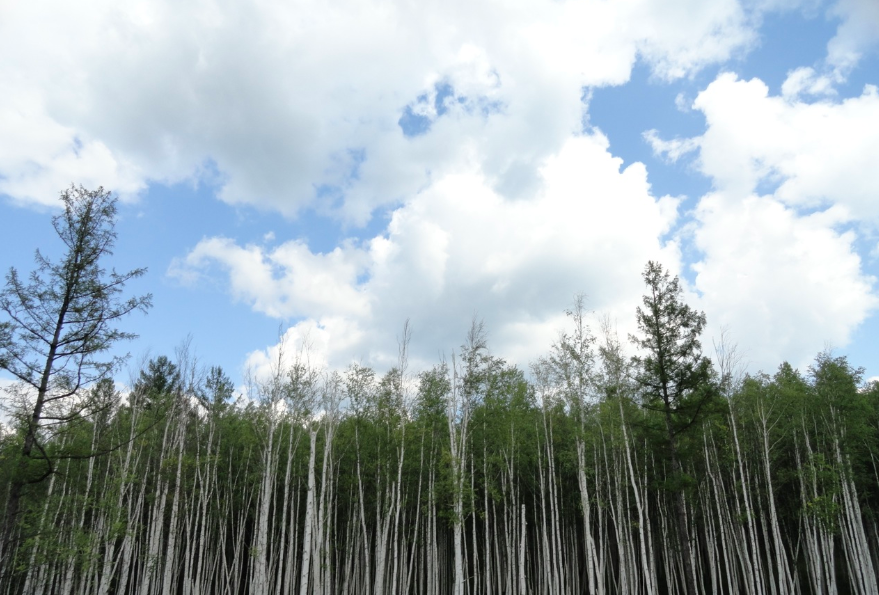 白樺がうっそうと茂る。