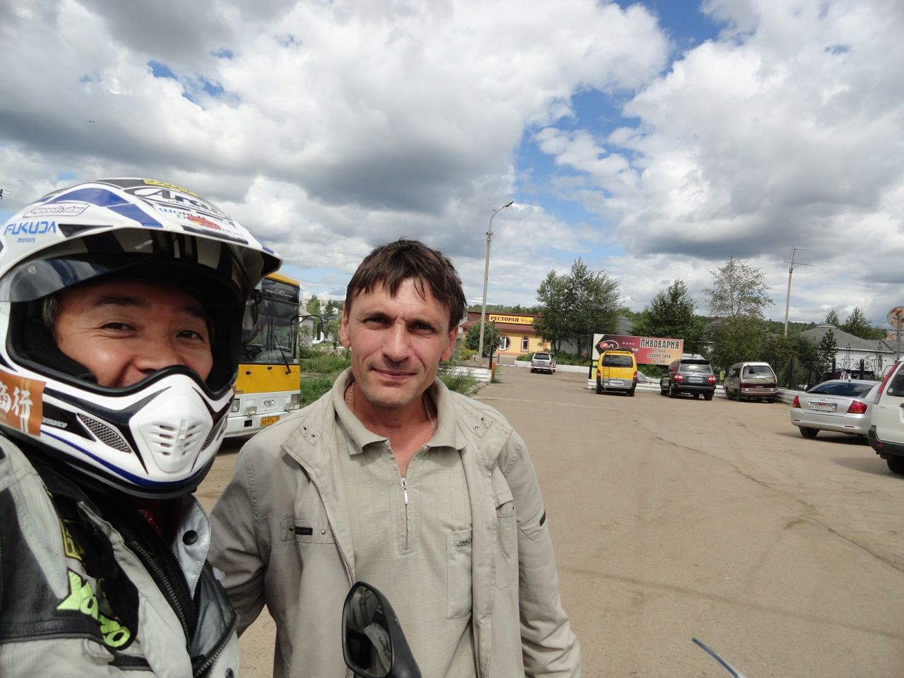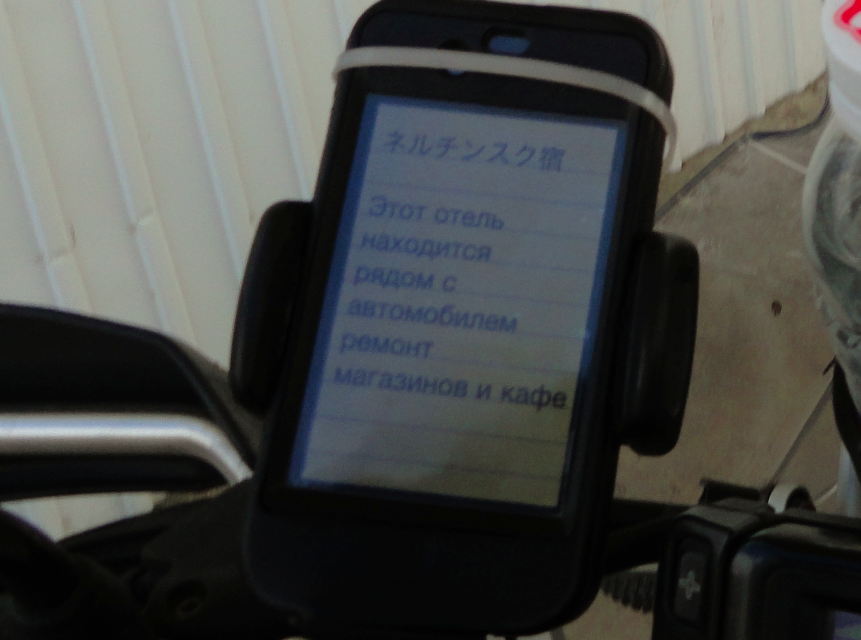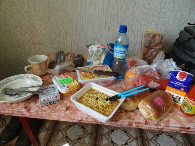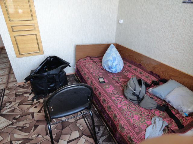ホテル裏手のバイク置き場から荷物を運んでくれた。1300ルーブル(3600円)でシャワー付きの空き部屋があった。