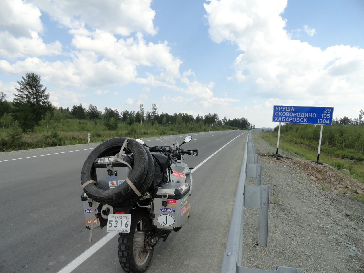 幹線道へ出て走り続け、今日の目的地であるスコボロジノの手前、100㎞地点でバイクを停める。
