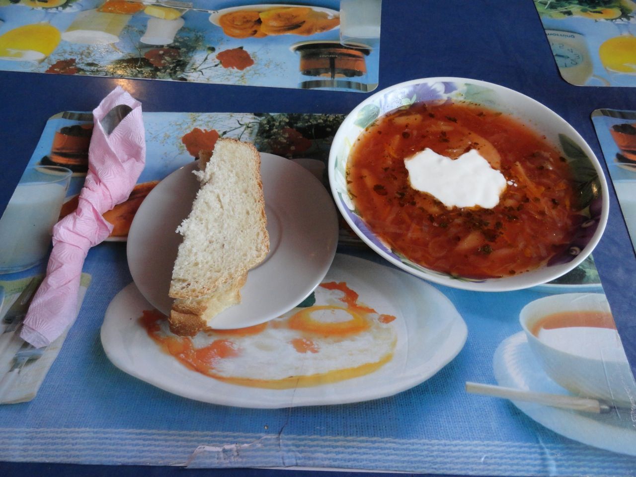 基本、昼食休憩しないで走る私としては、朝食はしっかり食べておかないとと思い、一生懸命、スプーンで口に運び、苦い紅茶で胃に流し込む、そしてピロシキで口直し、を繰り返していたが、さすがに三分の一ほど残してしまった。