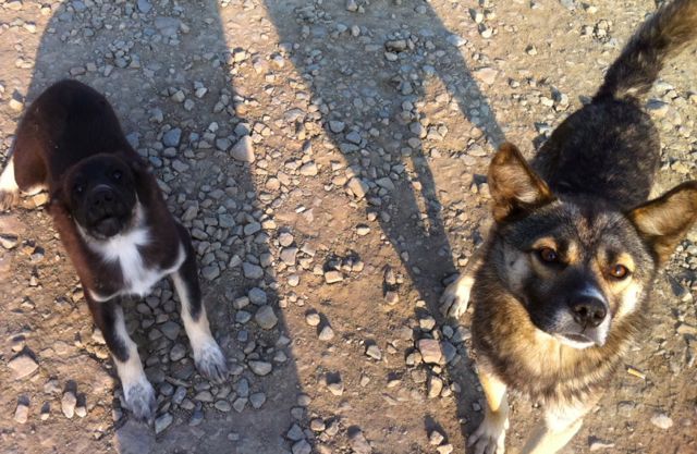 犬にからまれる。