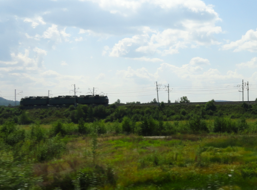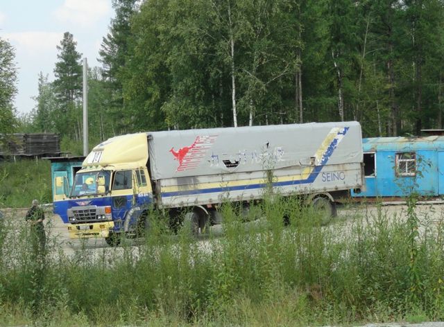 短いシベリア鉄道貨車と行き会う。