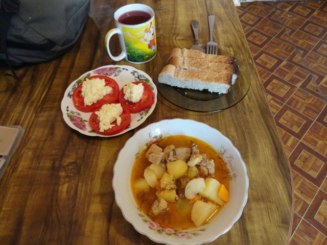 そこで、出て来たものは、ボルシチとカツレツライス。