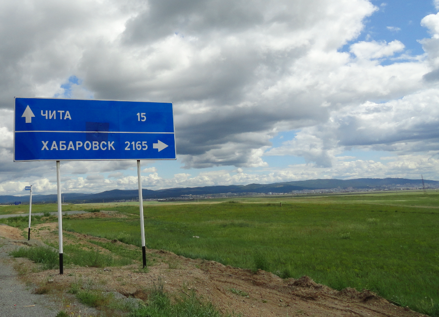 左方面がペトロフスク ザバイカリスキーと書いてあるんです(笑)ちなみに、標識は弾痕だらけ。(怖ー)大口径のものも見えます・・。