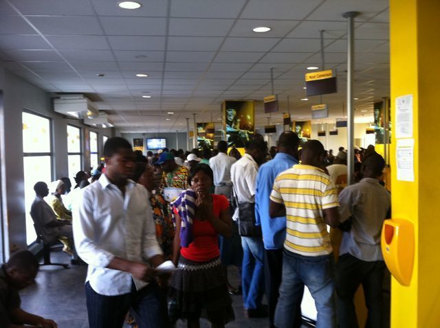 携帯電話の使用に関連して訪問した現地の大手電話会社。超混み!アフリカは今どこの国も携帯ブーム!!