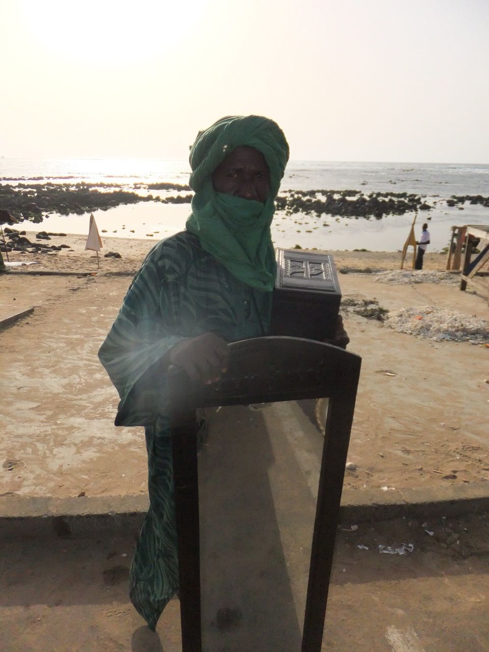 ダカールを象徴するかのような行商の方(笑)バイクの私にデカイ鏡を売り込みます(笑)