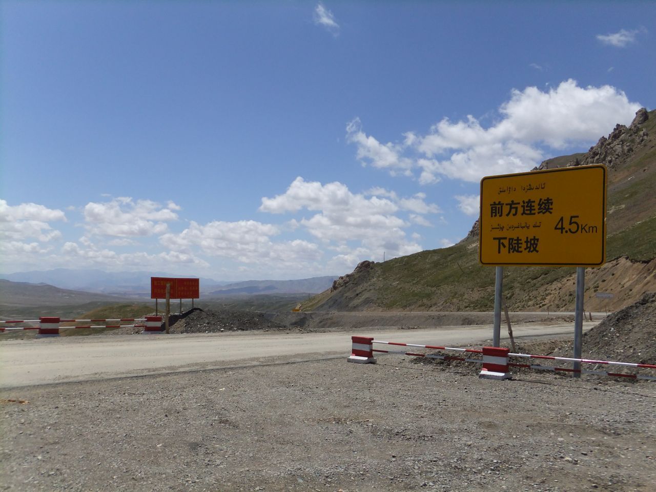 途中、長い範囲にわたり工事が進められています。ナルインからトルガルト峠まで全面舗装が終わるのは20年後くらいだろう。