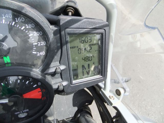 正確なバイクの気温計が38℃を指す。
