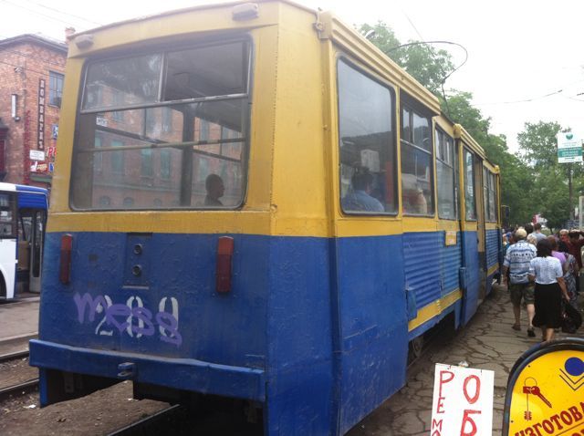 街中を走る市民の足、路面電車。かなりの年代ものです。