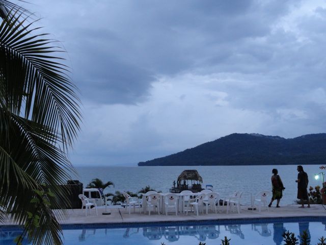 宿に戻る手前で食堂だと思って入ってみたところが、奥にプールがあるホテル兼用の眺めの良いレストランになっていた。