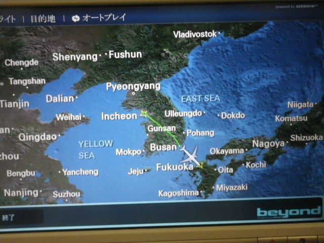 シドニー/オーストラリア〜福岡/日本の旅to Fukuoka/Japan from Sydney/Australia by an airplane.