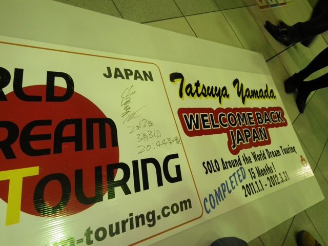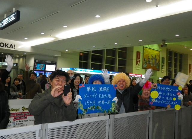 「達也さーん!帰国、おめでとうー!!」