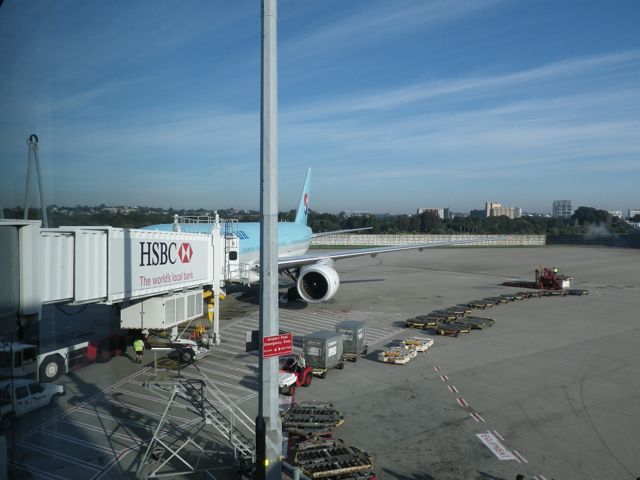 8:55発、インチョン(ソウル/韓国)経由で、約10時間のフライトです。