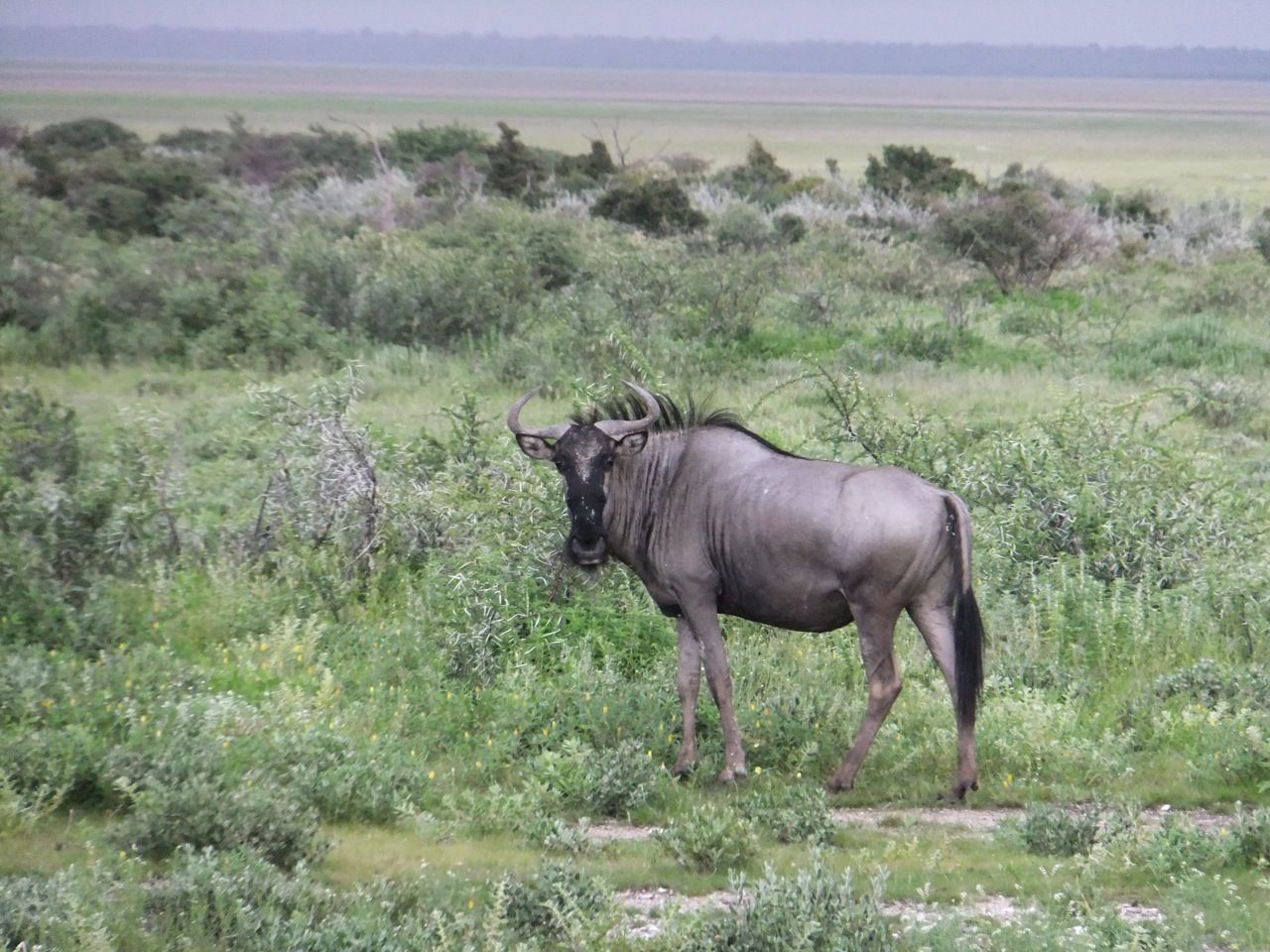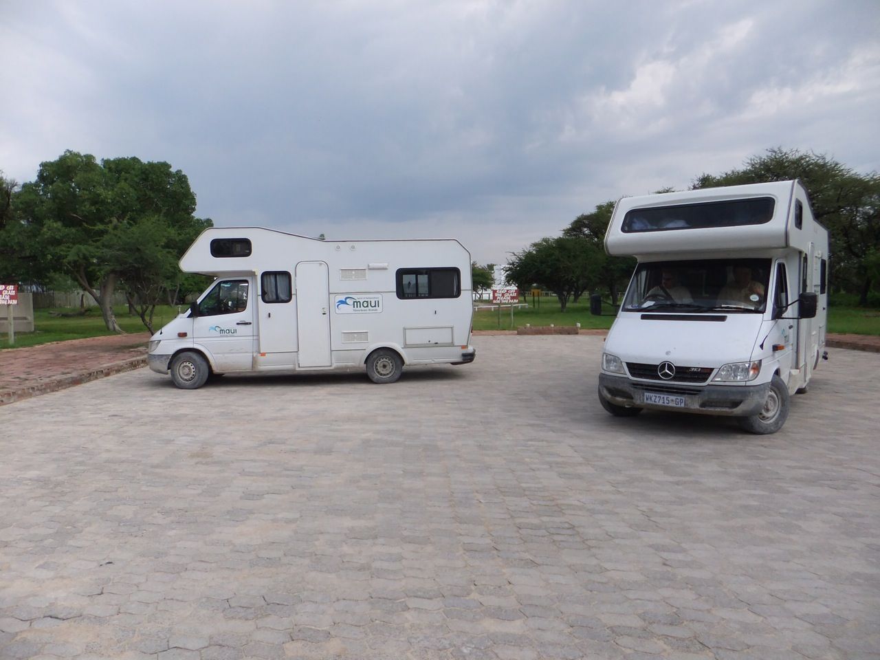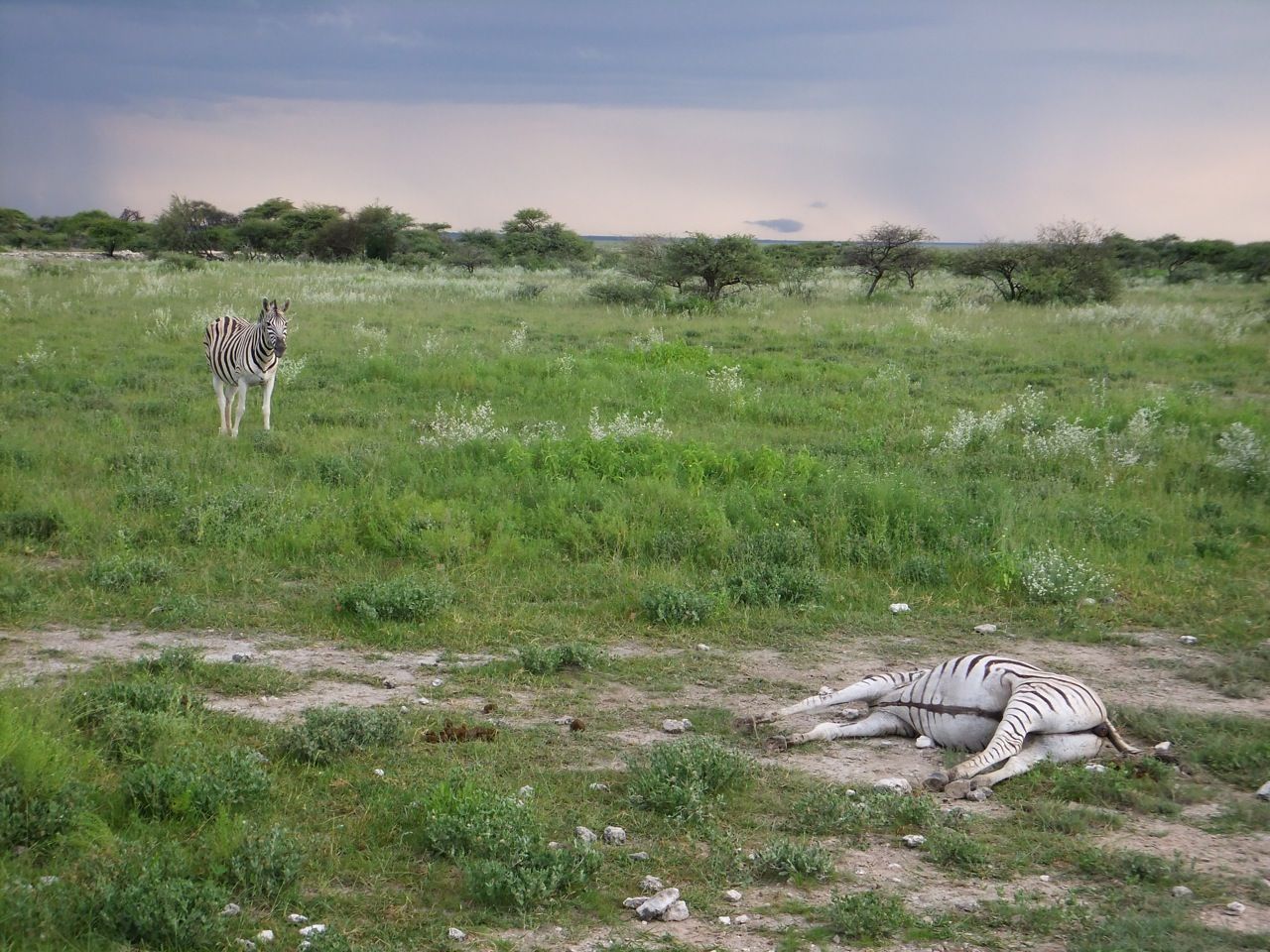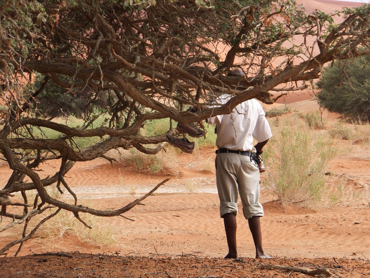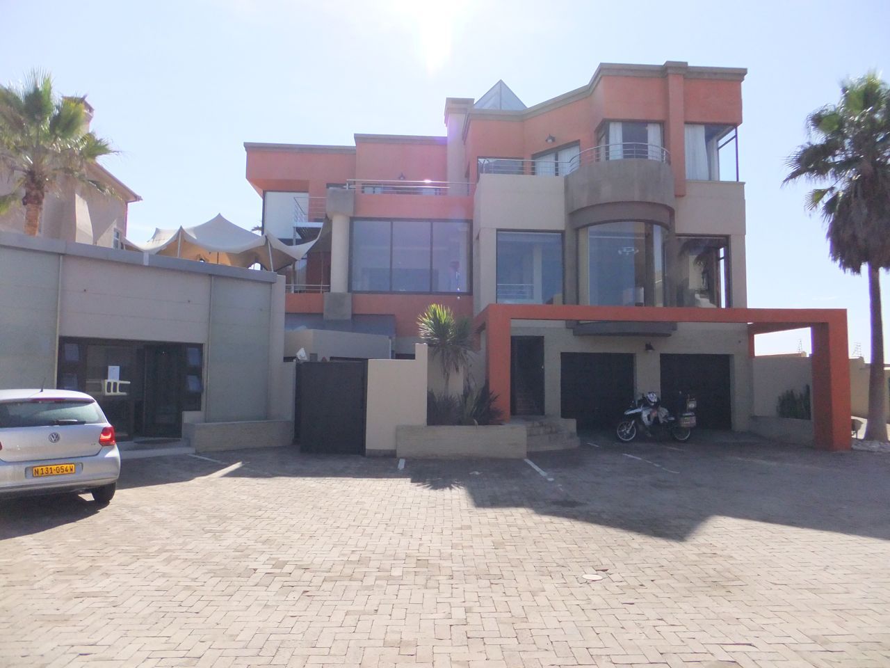 この国道は速度制限が120キロのところと60キロのところが交互にありそこを走行しながらルバンゴまでの到着時刻を計算する。この調子で行けば夕方には着くだろう。などど考えながら走行していると突然また悪路に。。今度は国境を超えたところの道の状態よりさらに悪い。ギアを二速に入れることができず、平均速度は15キロほどまで落ちる。デカイ穴に落ちないようによけ、またどうしようも無い時は超低速で穴を超えていく。ただアスファルトが断裂し崖崩れ状態、深い陥没の穴にはまったら転倒間違いなしなので本当に神経を使う。道の面積の内、95%が穴で残り5%が平面と言えば想像がつくでしょうか。大型トレーラー達も皆この道を通るので本当に辛そう。車輪が沢山ある分、バイクよりもゆっくりだ。 結果この状態の道が延々、100キロほど続くことになる。途中、部分的にこの酷い国道をさけるために多くのドライバーが走った自然に出来た側道がある。その道は幾分が走り易くギアをたまに二速に入れることが出来る。ただその道も大きな水たまりが途中に立ちはだかるので国道に復帰しなければいけない。国道は高い位置を走っていて側道は低い位置にあるので側道へ下るのと駆け上がるのをしばらくはそれを繰り返すことになる。ある時、側道から国道へ復帰しようとした時、路面の大きなギャップがバイクの底をヒットした反動で転倒してしまった。今回は傾斜が低い方向へバイクが倒れ、私自身は地面を転がることになった!地面を転がったのは久しぶりだ(笑) もちろん低速での転倒だったのと完全な装備のお陰でケガもない。ありがとう!ラフアンドロードとBMWのブーツ&グローブ、アライのヘルメット!(笑) バイクはタイヤのほうがハンドルより高い位置の状態で横たわっている!全ての荷物を降ろしてもそのままでは起こすことが出来ない。。お手上げ状態のところに反対側からやってきたトレーラーの運転手が声をかけてくれ助手の方と共に起こすのを手伝ってくれた(感涙)皆、困っている人をすぐに助ける習慣は本当に素晴らしい。やっとの思いでバイクに荷物を積んでいる最中今度は反対側にバイクを倒してしまった(恥)相当疲れているらしい。いつ終わるか判らない悪路を走り続けるのは本当に辛い。セスリエムからスワコプムンドに向かう長いダートは天国のように思えるほど。途中から常に気にし始めていたのは太陽の傾き。超低速走行のために一向に走行距離が伸びない。本日の目的地、ルバンゴに到着する予定の時間がどんどん遅くなっていく。暗闇になった場合、この悪路を走るのは自殺行為だ。とは言っても無情に時間が過ぎ、悪路は容赦なく続く。やっと奇麗な舗装路に出た!(嬉)ここからあとはルバンゴまで一直線!と思ったのはつかの間、すぐにまた悪路に。この精神的ショック、皆様わかります?(笑) どんどん日が暮れていく。16;00を過ぎた頃からトレーラー達が路上に車を停めて車泊の準備を始める光景を見かけるようになった。中には荷台の下と路面の間にベッドを取り付けている車も見た。そうして長い距離を走っていくんだね。 私ももう今日中にルバンゴに着くのは無理と判断しどこかで泊まらないといけない。しかし私はテントを持っていない。その辺にバイクを停めて寝る・・と言う事は無理なのだ。何か大きい土管を探すか、または人がいる村に行って馬小屋でもいいから寝床を提供してもらうかと考えるが人も歩いていない地域が続く。またもし寝る場所を確保出来たとしても食料がない。少しだけバイクにビスケットが積んである。水もあと僅か。こう考えると国境で渡してしまったリンゴ二個と国境屋に飲ませた水が愛おしく感じてしまった。