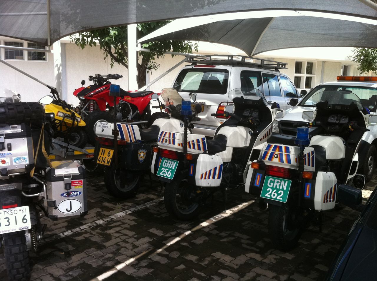 オンダングア~アンゴラの最初に目指す都市、ルバンゴまで500キロ以上あるようなので今日も出来るだけ早く出ることにした。とは言っても朝食をとってホテルを出たのは7:00くらい。小一時間ほど走ると国境の町オシカンゴに到着。ナミビアの国境が8:00から始まるとのことで少し玄関前で待ちオープンしたところでイミグレーションで出国のスタンプをもらうためにパスポートを出す。係官が「アンゴラに行くのにレター(現地の誰かからの招聘状)を持っている?」というので「持ってないよ」と答えると「じゃあ、アンゴラに入国出来ないから、ナミビアの出国スタンプは押せない」という。確かに、もしアンゴラに入国を拒否されたらナミビアに戻ってこないといけなくなるが私のビザは再入国が出来ないものだった場合、ナミビアにも戻れず、アンゴラにも入れずで私の身柄が宙に浮いてしまう。ただ私がレター(招聘状)はないものはないと言うと「ではまず先にアンゴラの国境に行ってレターが無くても入国が可能か聞いてきてみて、それからOKだったらもう一度、ここへ戻ってきて頂戴。そしたらナミビア出国のスタンプを押してあげる」という。有り難い話しではあるがかなり面倒くさいし時間がかかる話しだ。さらに私がアンゴラ入国の際、レターが絶対必要であることを日本の大使館で聞いてないというと再度、ナミビアの係官がどこかにいって調べているようで20分ほど待った結果、「悪かった。レターがなくても入れる場合があるようです」と言ってスタンプを押してくれた。またそれでももしアンゴラで本当に入国を拒否されたら再度ここへ戻ってきていいですよと言ってくれた。通関窓口でカルネの出国スタンプを押してもらい出国は完了。次はアンゴラ国境へ。国境入り口からもう右側通行が始まる。少し戸惑う。駐車スペースにバイクを停めるとすぐさま二人の男が話しかけてくる。「国境屋」さんである。「入国手続きの作業を手伝いますよ」と言う。今までタンザニア以外は全て自分でやってきたので「大丈夫、自分でやるよ」というと「ポルトガル語話せるの?あっちこっちまわされて大変だよ」というのでそう言えばそうだと思ったが金額を聞いてみると$50という。それは高すぎるからやっぱりいいよ、自分でやるというと「もういくらでもいいですよ」というので終了後、私の言い値で支払う事になった。そこからが大変。やはり初っ端から入国イミグレで「レターがないと入国出来ません」と窓口の係員が言う。用意していないし、日本のアンゴラ大使館で必要であることを聞いてなく、ビザはちゃんとあることを告げると、エラい上司に確認後、別の建物に連れて行かれ私の旅程と目的を聞かれた。あくまで観光目的であり滞在するわけでなく一週間後にはコンゴに抜けることを伝えるとそのエラい上司が承認してくれた。無事、入国スタンプが押された。しかしその後、そのエラい上司が私のバイクのところにやってきて何か御礼が欲しいな、と。コーラを買って持ってきて欲しいと言う。常にそばに居た国境屋の二人も苦笑している。コーラは売っている場所がわからないので私はリンゴを二つ持っているのでそれをあげるというとえらく喜んで受け取っていった。その後もこのエラい上司が手間のかかる車両の入国手続きなどの時も常に国境屋の二人と一緒になって手伝ってくれた。リンゴ二個で安く済んだ。その後もとにかく全ての作業に途方も無く時間がかかる。係官の仕事がみんな本当にゆっくり。国境屋もえらく頑張ってくれたお陰で大分親しくなった。アンゴラではナミビアと一時間の時差があることも知り時計を戻す。やっと全ての作業が終わってついにアンゴラに入国したのはナミビア側の国境についてから4時間半!しかしもしポルトガル語の出来ない私が自分でやっていたら一日で終わっただろうか?(笑) ということで2名に合計30ドル渡した。あとは重量税のようなもので6000アンゴラクワンザ弱(約6000円弱)を支払った。この国境でUS$からアンゴラクワンザへ両替もした(両替レート:100ドル=8000クワンザ)まあこんなもんでしょう。国境最後のチェックポイントではバイクに積んである荷物の中身のチェック。係官は優しい感じの人だったが今までで一番厳しいチェックでここでも時間が結局30分ほどとられただろうか。