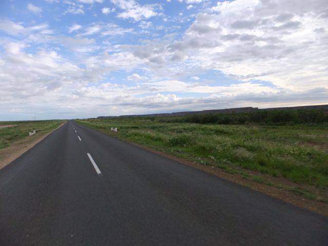 いつものように「ハローアンゴラ!」を叫んで走り出すや否や、道の状況が相当悪い。アスファルトが崩れ、路面は隕石が落ちたかのような巨大な穴が無数に空いている。それも穴が深い。気分的にはキンバリーで見た「ビッグホール」のようだった(笑) その状態が20キロほど続き平均時速は20キロ。それもこの道はミシュランの地図では最大の幹線国道であるので地図上では全く路面状況については心配していなかったのだが。しかしあまりにも酷いのでアンゴラ政府は何をしてるんだろう?と思いながら走っているとオンジバという町を過ぎると素晴らしい舗装路に変わった。いやーやっぱり幹線道はちゃんとしているんだね。アンゴラ政府エラい!(笑)と思い走る。途中、道の脇に何台も燃えた車の残骸が見える。その中には戦車の形骸を残すものもあった。内戦の爪痕なのだろう。今度は左側に完全な形を保っている戦車が置き去りになっていた。これはさすがにUターンして写真撮影。