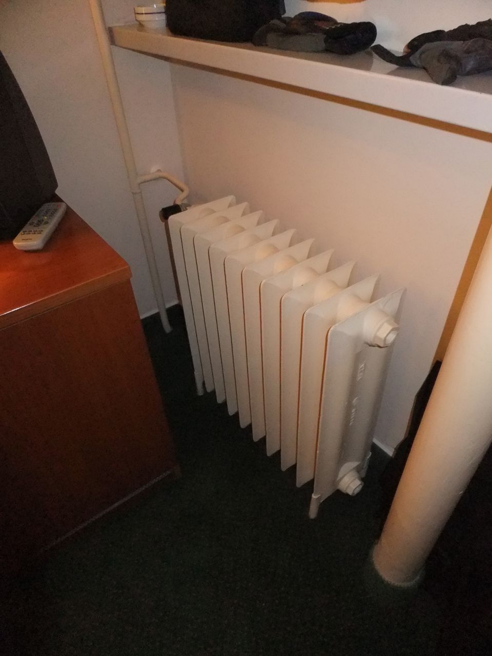 雨だからではなく元々寒い地域のようで室内にはこんな立派なヒーターが用意されています。蛇口をひねると建物中回っているお湯のパイプをこのラジエーターに通すことで部屋を暖めることが出来ます。