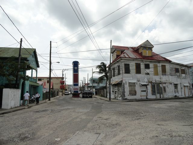 I fill up on petrol in Belize city at a petrol station in the city centre right next to the sea.